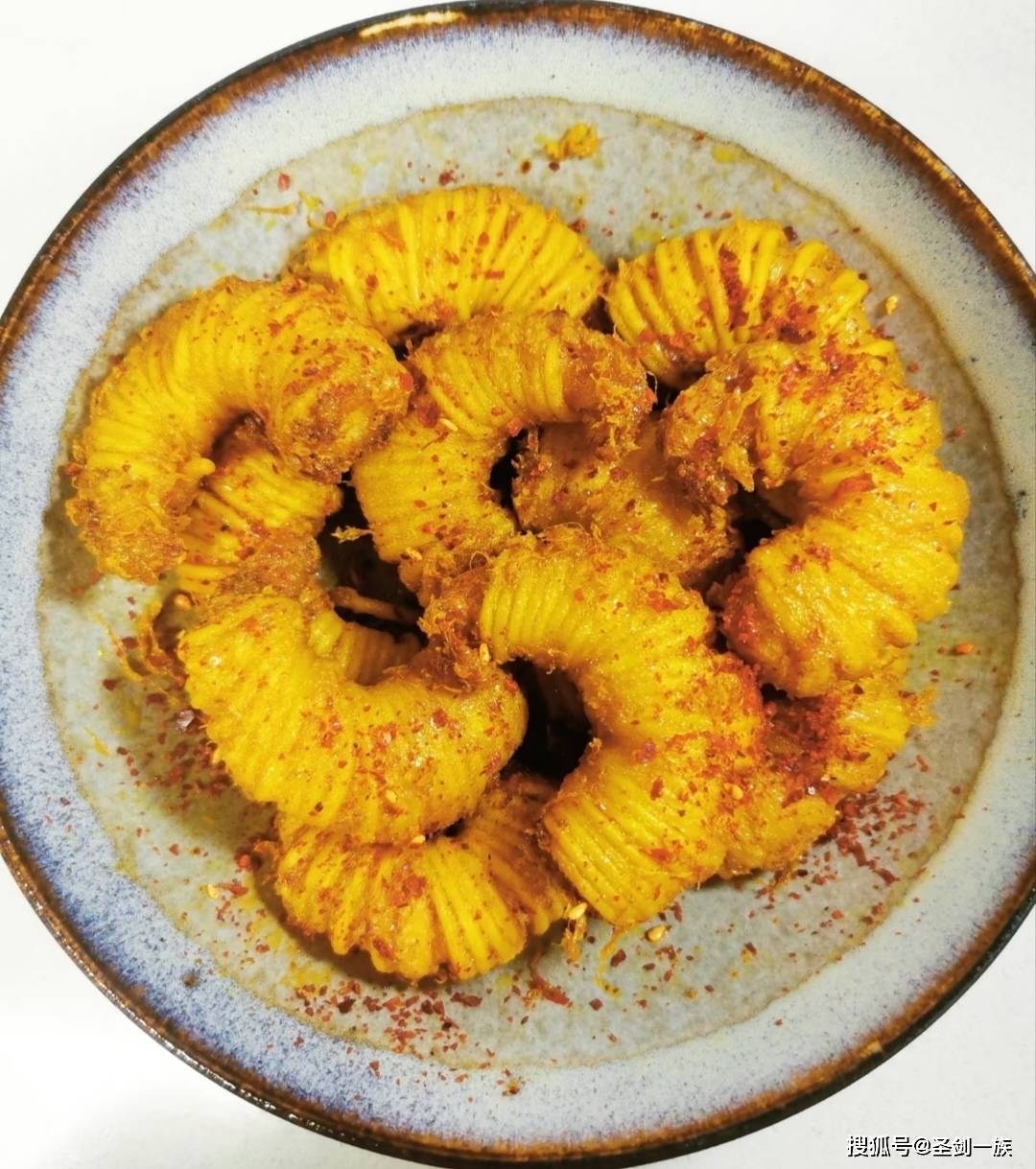 4. 捞出沥油后撒上辣椒粉和椒盐,外酥里嫩的口感让人欲罢不能。
