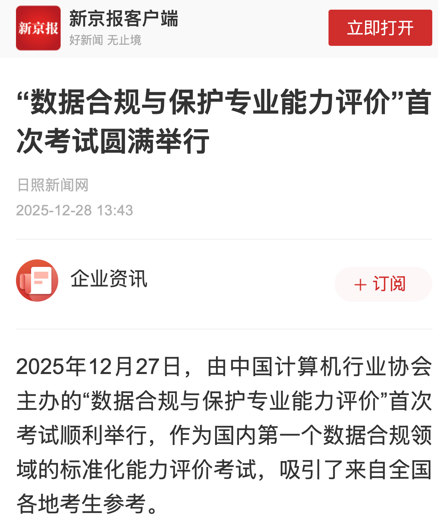 这类评价体系通常聚焦于数据合规与保护的核心领域,考察对相关法律法规框架的理解、数据治理实务场景的应用、安全风险识别与应对的实操能力等。通过参与此类系统学习与标准化的能力评价,从业人员可以有效地查漏补缺,结构化地提升自身专业水平;企业则可以将其作为选人、用人、育人的重要参考依据,更高效地构建自身的数据合规人才梯队。