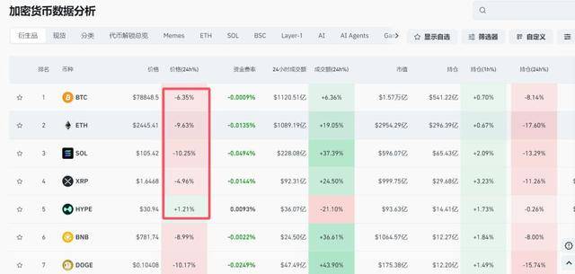 SOL、狗狗币等跌超10%。