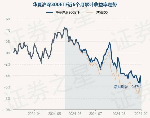 证券之星消息,9月2日,华夏沪深300ETF最新单位净值为3.4079元,累计净值为1.6873元,较前一交易日下跌1.69%。历史数据显示该基金近1个月下跌3.32%,近3个月下跌6.95%,近6个月下跌5.68%,近1年下跌11.93%。该基金近6个月的累计收益率走势如下图: