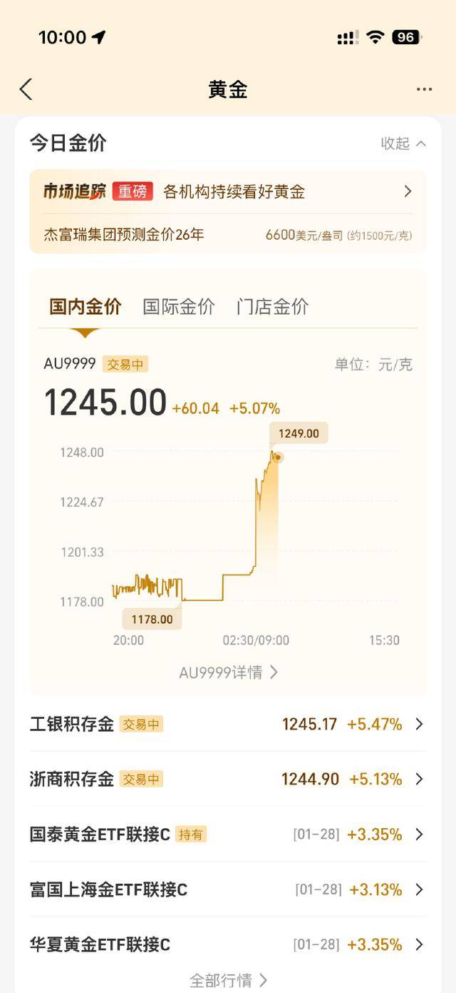 但追高风险已显现,1月29日国际黄金冲高后回落逾150美元,A股萃华珠宝午后跌停,板块内多数个股跟风下跌,有网友说:“追高需谨慎,别把贪心当底气。”