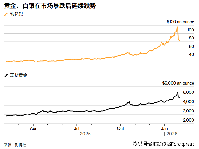 1月份,由于投资者对地缘政治动荡、货币贬值以及美联储独立性的担忧加剧,纷纷涌入黄金和白银市场,这波涨势急剧加速。但是如此前所说,贵金属这波涨势已经过急过快,所以大幅调整只需要一个触发事件。而上周五美国总统特朗普对于下一届美联储主席的提名成为了贵金属调整的点燃剂。