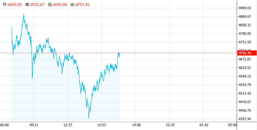 从今日行情表现来看,现货黄金一度失守4500美元/盎司,向下触及4440美元/盎司,日内跌幅超9%,较历史高位5596美元回撤超1100美元,综合来看,仅三个交易日跌幅逼近20%。不过截至发稿,现货黄金有所回弹至4700美元/盎司,单日跌幅仍达到4%。