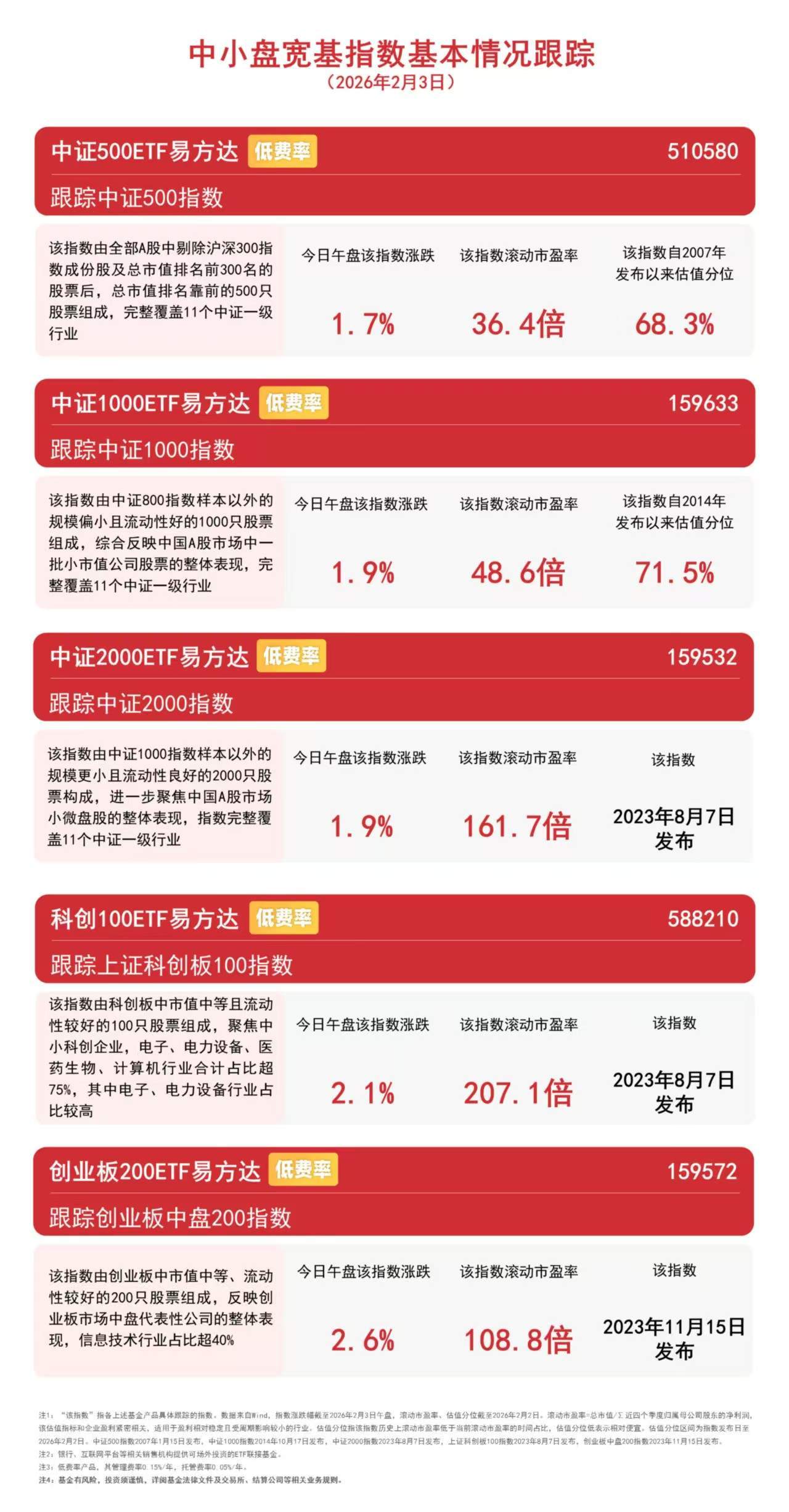 截至午间收盘,创业板中盘200指数上涨2.6%,科创100指数上涨2.1%,中证1000指数、中证2000指数均上涨1.9%,中证500指数上涨1.7%。
