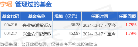 宁瑶女士:中国国籍,华东师范大学金融学硕士。曾供职于华宝证券股份有限公司证券投资部担任债券交易员。2017年12月加入兴业基金管理有限公司,先后担任交易部债券交易岗、固定收益投资部专户投资经理助理、固定收益投资部基金经理助理。现任兴业稳天盈货币市场基金、兴业鑫天盈货币市场基金、兴业添天盈货币市场基金、兴业稳固收益一年理财债券型证券投资基金的基金经理助理。2024年12月17日起任兴业安润货币市场基金基金经理。