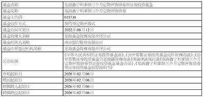 注:(1)本基金以定期开放方式运作,即采用封闭运作和开放运作交替循环的方式。本次开放期为2026年2月6日至2026年3月13日(20个交易日),是本基金第十一个封闭期结束后的开放期,也是本基金开始运作以来的第十一个开放期。