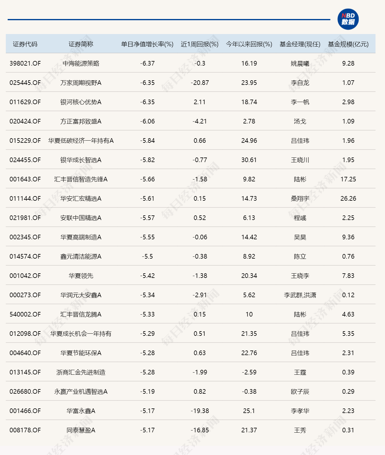 2.单日跌幅榜