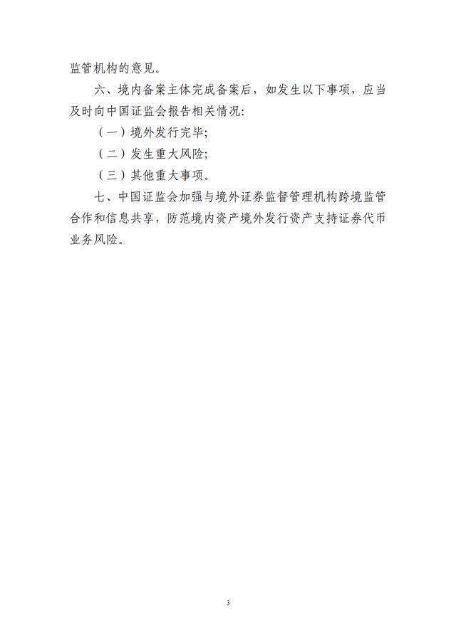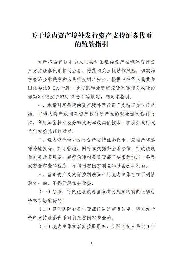 现公布《关于境内资产境外发行资产支持证券代币的监管指引》,自公布之日起施行。