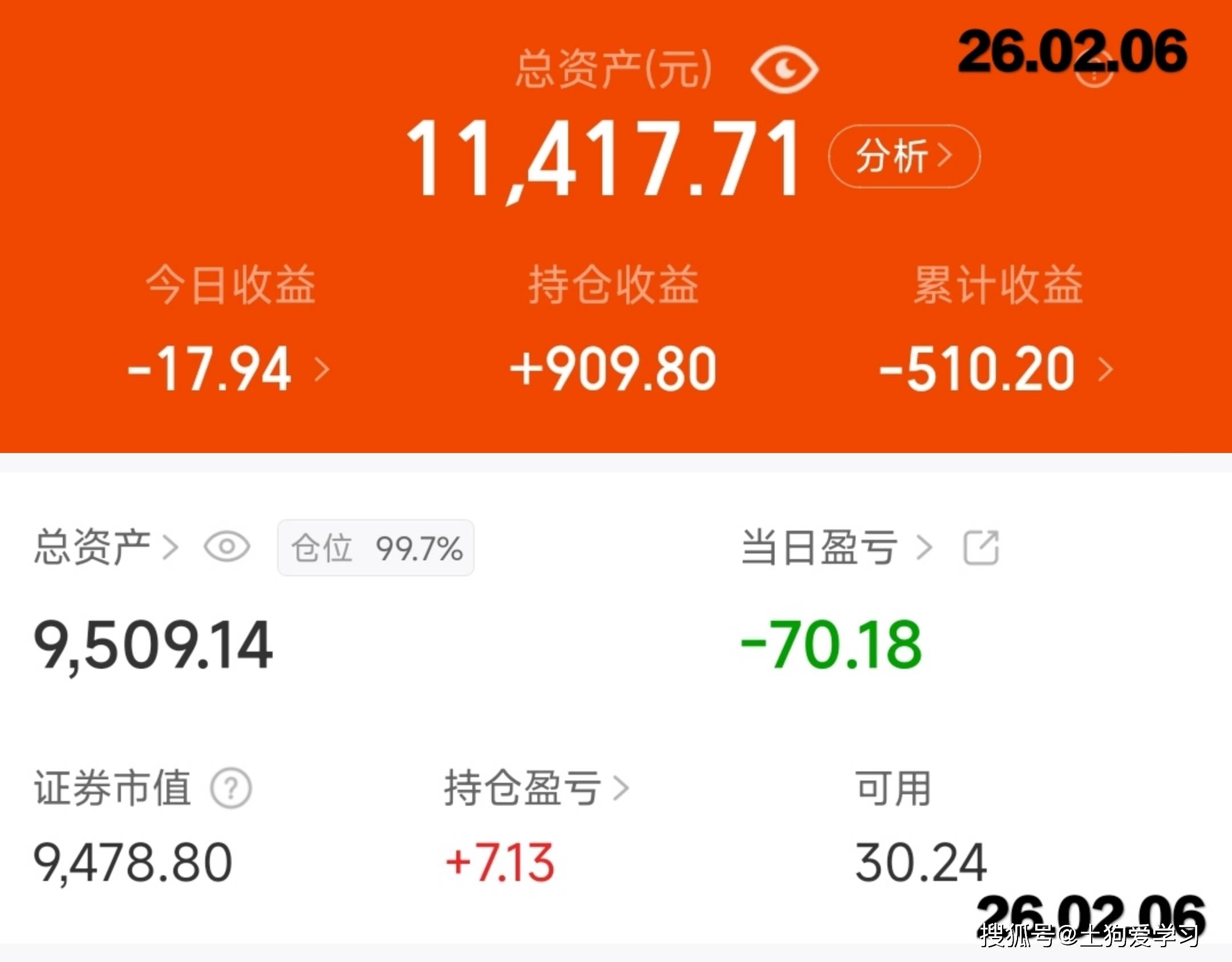 26.02.06 基金亏损88元~