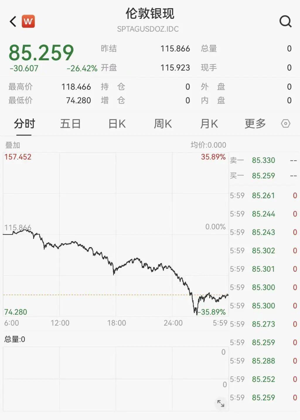 现货白银周五收跌26.42%,创1983年2月28日以来最大单日跌幅,报85.259美元/盎司,脱离1月29日所创历史最高位121.6540美元/盎司,1月份累涨19.12%。COMEX白银期货周五收盘暴跌27.18%,报83.300美元/盎司,1月份累涨20.10%。