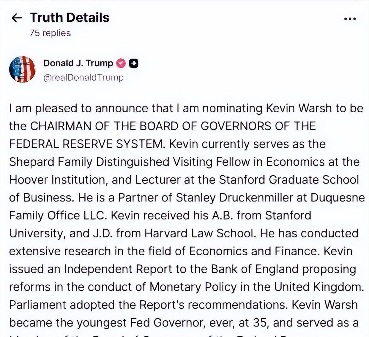 近段时间,他刚把自己的亲信提名为美联储主席,这样一来,美国央行的货币政策就能和他的贸易战步调一致了。