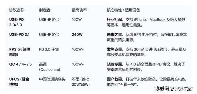 在充电界的“江湖”里,公有协议扮演着翻译官的角色,试图让全世界的电子设备说同一种语言。其中名声最响的莫过于 USB-PD,它背后站着 USB-IF 协会这个正统“豪门”。PD 协议的野心极大,不仅统治了笔记本电脑和 iPad,还逼得苹果放下了 Lightning 接口的傲慢。它最厉害的地方在于“握手机制”,接通瞬间就能与设备确认眼神,商量出最合适的电压电流。