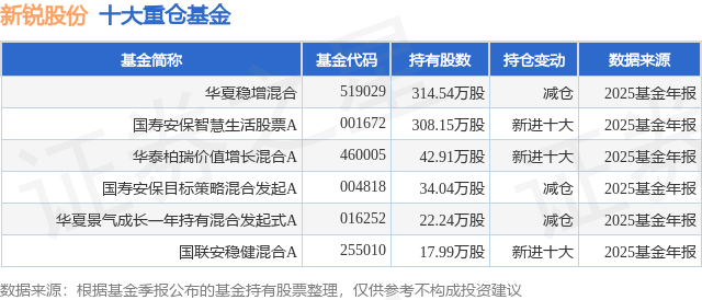 重仓新锐股份的公募基金请见下表: