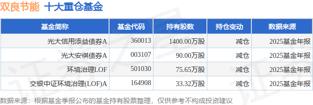 重仓双良节能的公募基金请见下表: