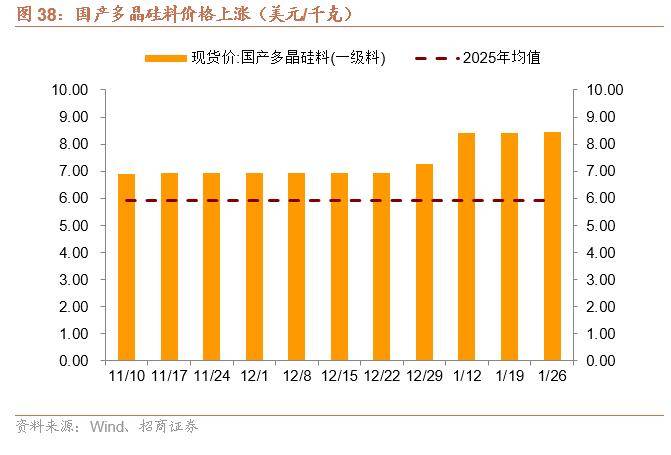 上周国产多晶硅料价格为8.45美元/千克,环比上涨0.03美元/千克 ,同比增长68.7%。