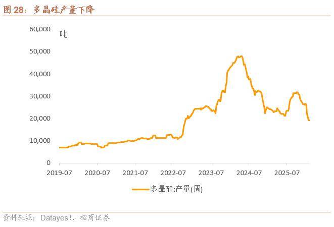 上周多晶硅产量为19210吨,环比下降10吨,同比下降19.5%。