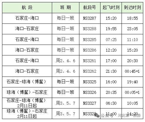 石家庄-海口、石家庄-琼海:围绕海南旅游热,方便旅客直达海南东部,为旅客提供更丰富的海南游选择。