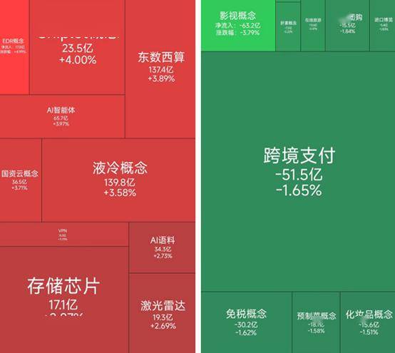 2月12日,A股三大指数集体上涨。截至收盘,沪指涨0.05%,报4134.02点,深成指涨0.86%,报14283点,创业板指涨1.32%,报3328.06点。从板块行情上来看,今日表现较好的液冷概念和存储芯片,而影视概念、跨境支付和免税概念等板块下跌。