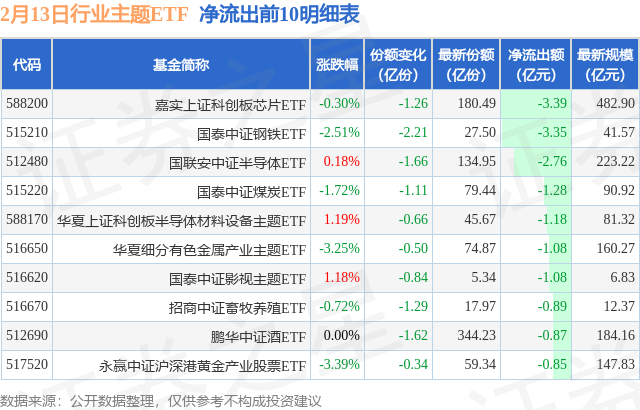 【ETF观察】2月13日行业主题ETF净流入4.84亿元
