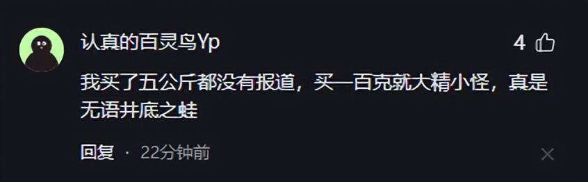 我买了五公斤都没有报到,买一百克就大惊小怪,真是无语井底之蛙