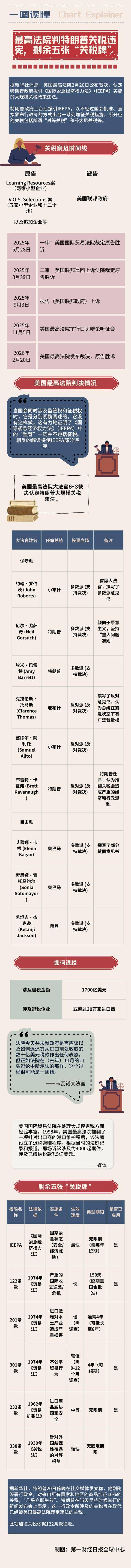 一图读懂|最高法院判特朗普关税违宪,剩余五张“关税牌”