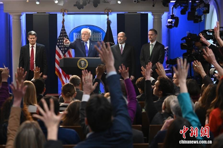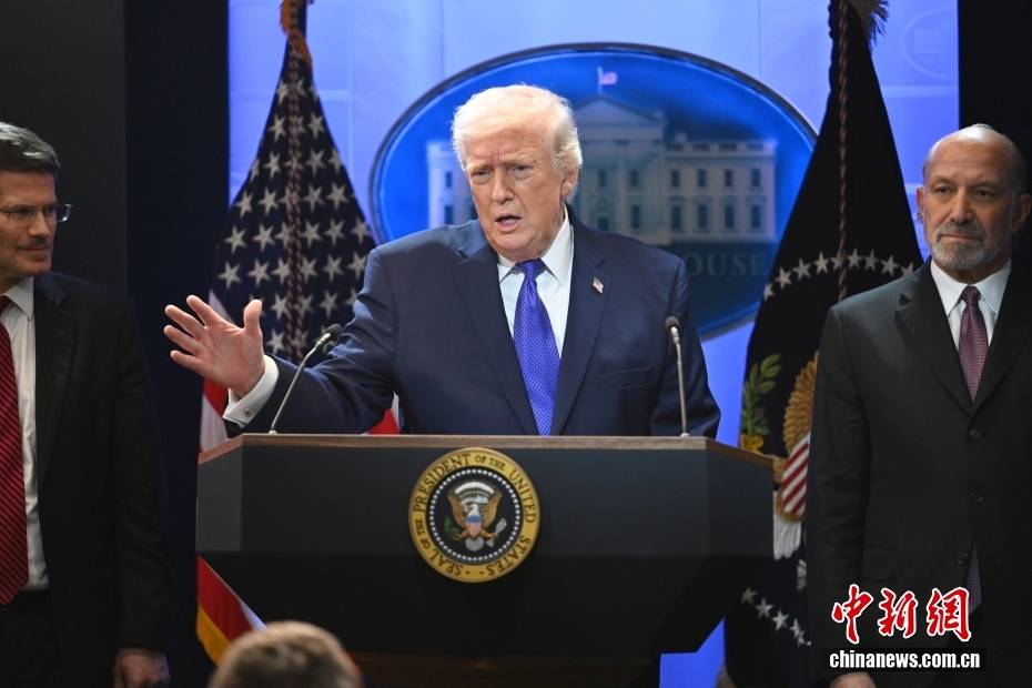 当地时间2月20日,华盛顿,美国总统特朗普在白宫就最高法院关税裁决举行记者会。中新社记者 陈孟统 摄