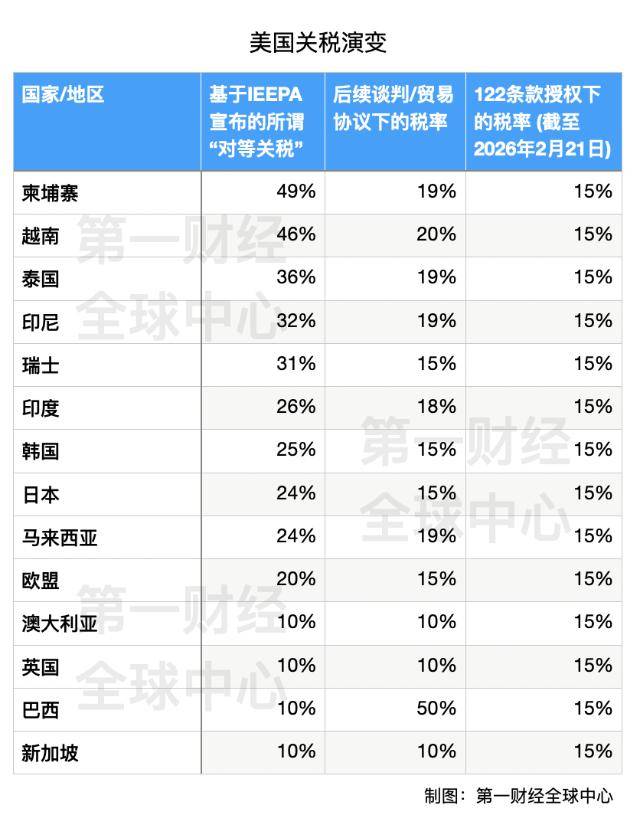仅过去一天,美国总统特朗普宣布将对输美商品加征的“全球进口关税”税率从10%提高到15%。