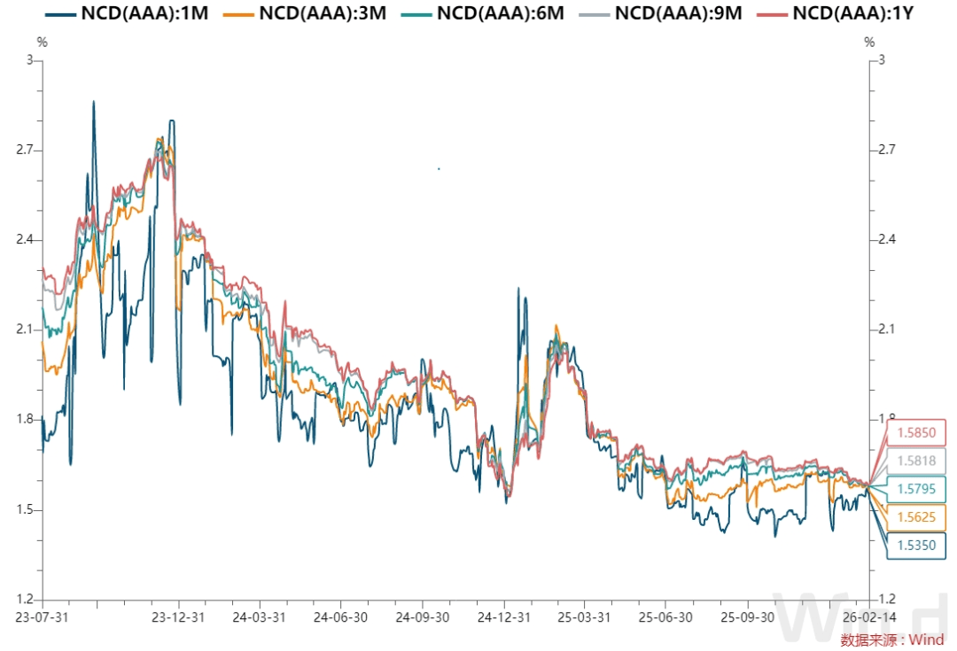 全国和主要股份制银行一年期同业存单最新成交在1.58%附近,较上日变化不大。