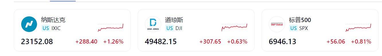 美股三大指数集体收涨,纳指涨1.26%,标普500指数涨0.81%...