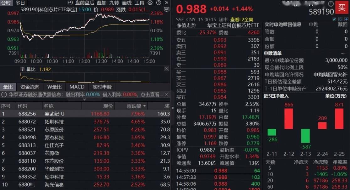 注:科创芯片ETF华宝被动跟踪上证科创板芯片指数,该指数基日为2019.12.31,发布日期为2022.6.13,该指数近5个完整年度涨跌幅为2021年 6.87%,2022年 -33.69%,2023年 7.26%,2024年 34.52%,2025年 61.33%,指数成份股构成根据该指数编制规则适时调整,其回测历史业绩不预示指数未来表现。
