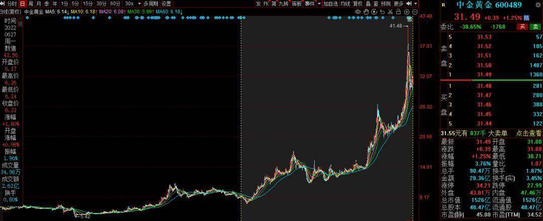 笔者还发现,基金在2024年1季度买入79.36万股的中金黄金,2024年2季度持有84.07万股,2024年3季度持有60.73万股,2024年4季度持有19.79万股。2025年1季度持有15.37万股,2025年2季度持有16.52万股,2025年3季度持有68.88万股,2025年4季度持有257.96万股。在基金持有期间,在2024年1月3日-2026年2月27日股票价格上涨了235%。