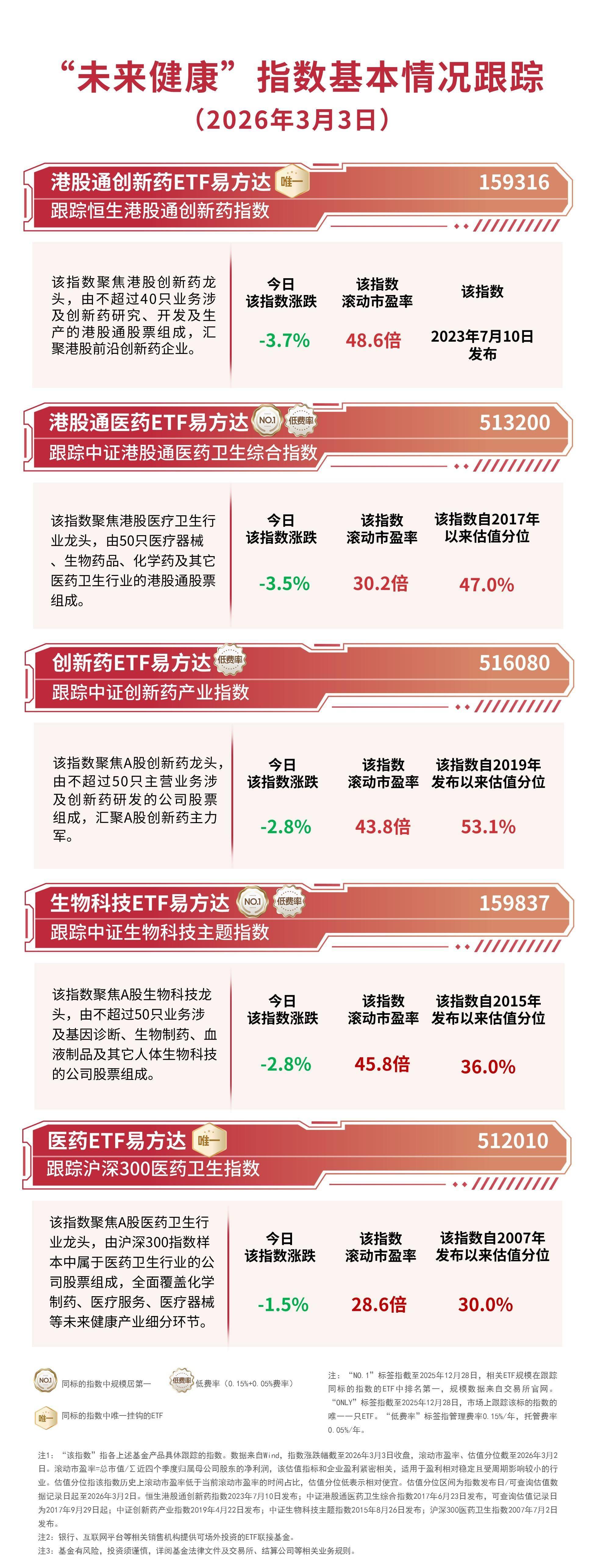 截至收盘,恒生港股通创新药指数下跌3.7%,中证港股通医药卫生综合指数下跌3.5%,中证创新药产业指数下跌2.8%,中证生物科技主题指数下跌2.8%,沪深300医药卫生指数下跌1.5%,资金逆势布局,生物科技ETF易方达(159837)今日净申购达2800万份。Wind数据显示,该ETF此前已连续6个交易日获资金净流入,合计3300万元。