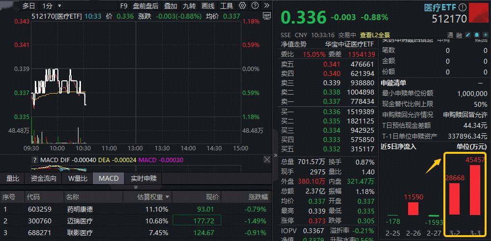 ETF盘中资讯|资金加速“抄底”! A股最大医疗ETF(512170)阶段新低,两日吸金超7.4亿!场内唯一药ETF续创历史新低