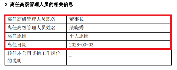 3月4日,天治基金公告,董事长柴晓秀因个人原因离职,董事长职务由总经理林洪钧代任。