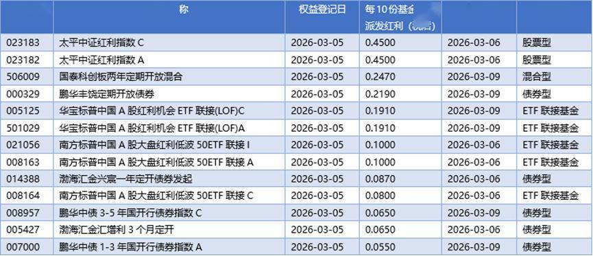 四、03月05日基金分红一览