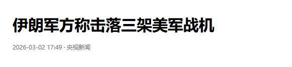 “伊朗空军迎来高光时刻!”根据央视新闻最新的报道,当地时间2026年3月2日,伊朗哈塔姆·安比亚中央司令部发布消息称,三架美军战斗机被伊朗空军的防空系统击落。这意味着,伊朗军方 ,伊朗空军直接认领了,美国空军F-15E战斗机在3月2日,接连在科威特坠毁事件。在3月2日,科威特国防部证实了,多架美国空军战机,在科威特坠毁。科威特国防部证实,在3月2日,有多架美国战机坠毁,并证实机组人员全部获救。随后,伊朗军方也认领了这个战绩,归到了伊朗空军战绩,是伊朗空军防空部队击落的美军F-15E战斗机。