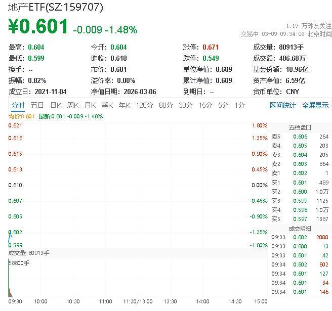 3月9日,截至9时33分,地产表现疲弱,代表A股龙头地产行情的中证800地产指数下跌1.26%,成份股方面,上海临港领跌2.04%,保利发展下跌1.99%,滨江集团下跌1.69%。