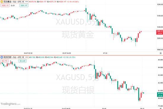 现货黄金一度向下逼近5000美元/盎司关口,因为持有非美元货币的投资者对以美元计价的资产的兴趣降低。现货白银一度回落至80美元/盎司下方,跌超5%。