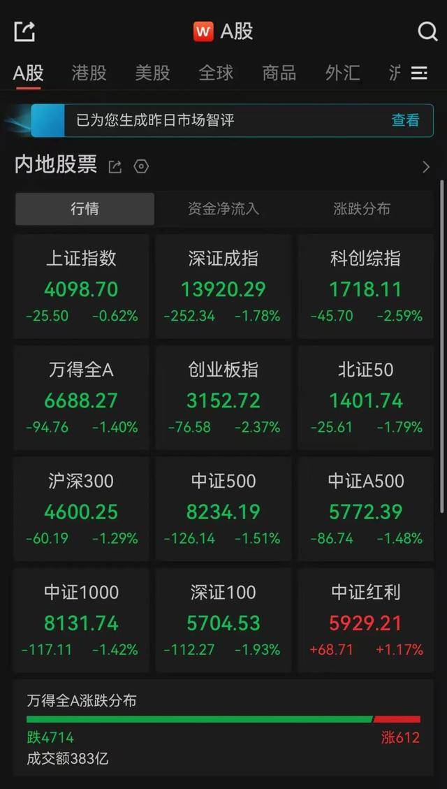 9日,A股三大指数低开。Wind数据显示,上证指数低开0.62%,深证成指低开1.78%,创业板指低开2.37%。