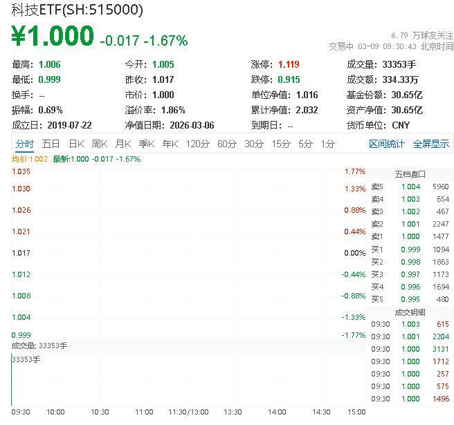 科创50ETF万家(58884... 截至2026年03月10日 09:47,科创50ETF万家(588840)上涨2.02%,最新价报1...