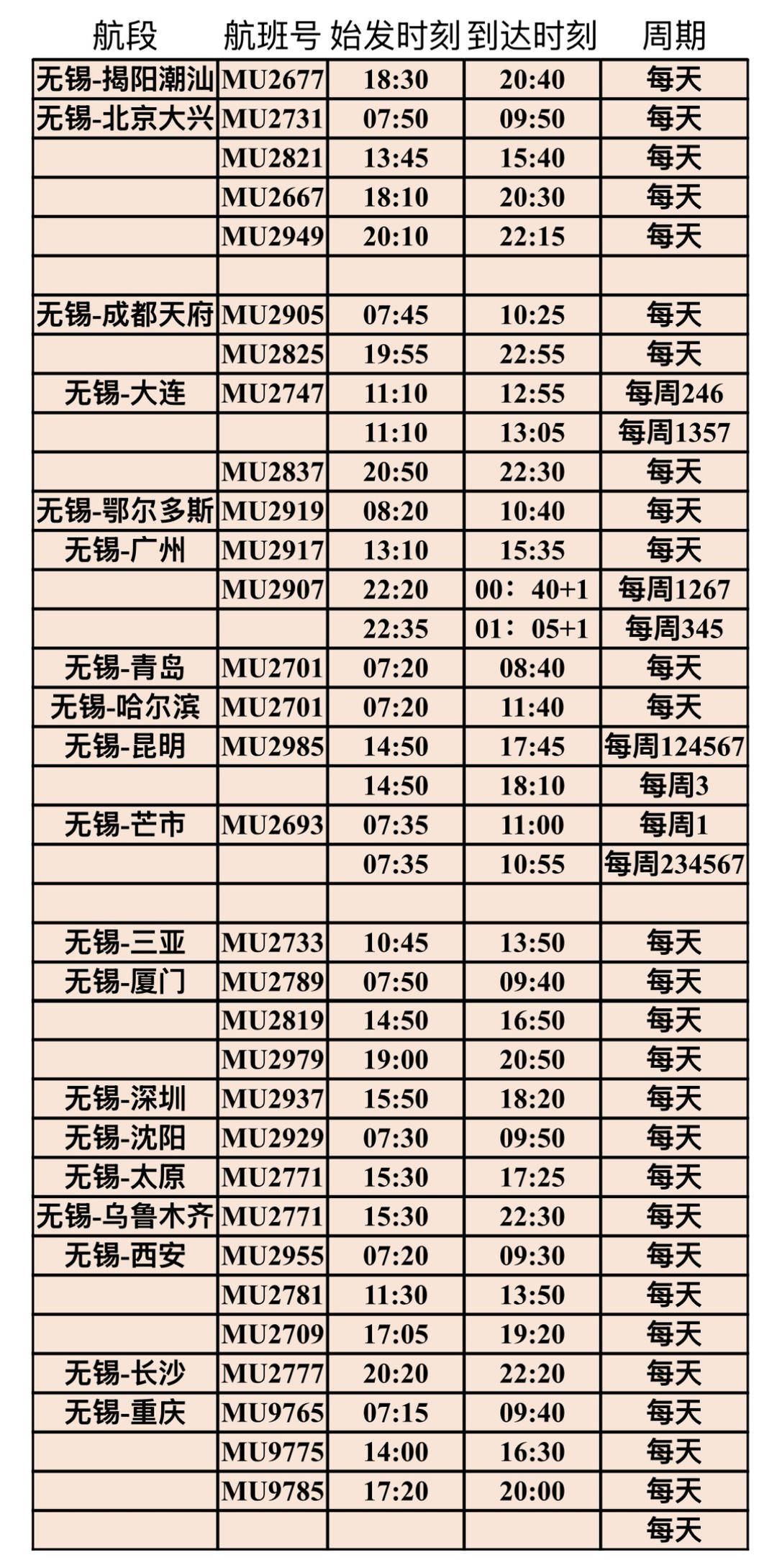为满足春夏季节旅客出行需求,3月29日起(夏航季起),东航江苏公司立足无锡硕放机场,全面优化并新增多条国内国际航线,通过新开直飞、加密班次、优化时刻等方式,为旅客提供更加便捷、多样的航空出行选择,助力旅客“趣玩盛夏,畅游山海”。