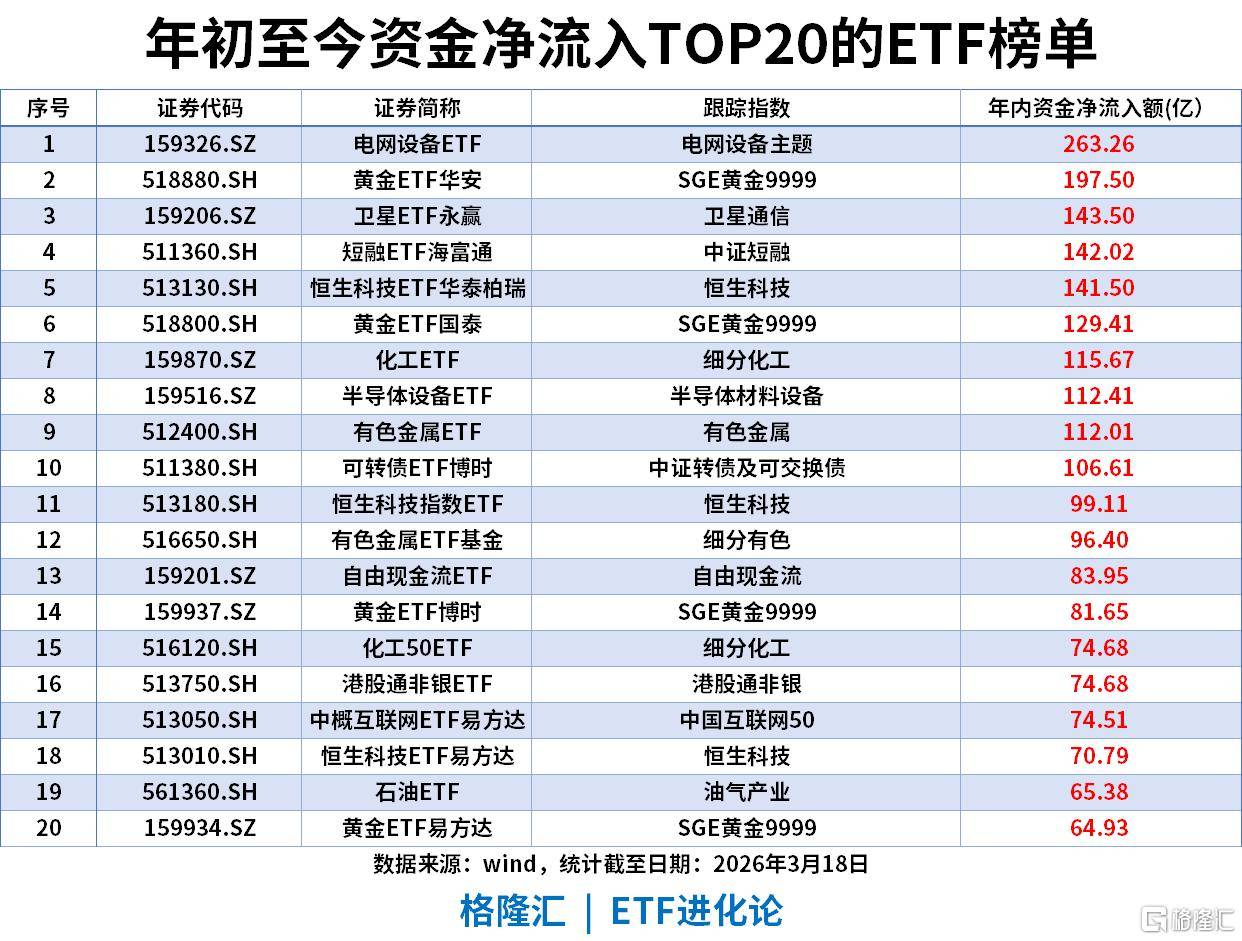 年初至今ETF资金净流入TOP20(截至2026-03-18)