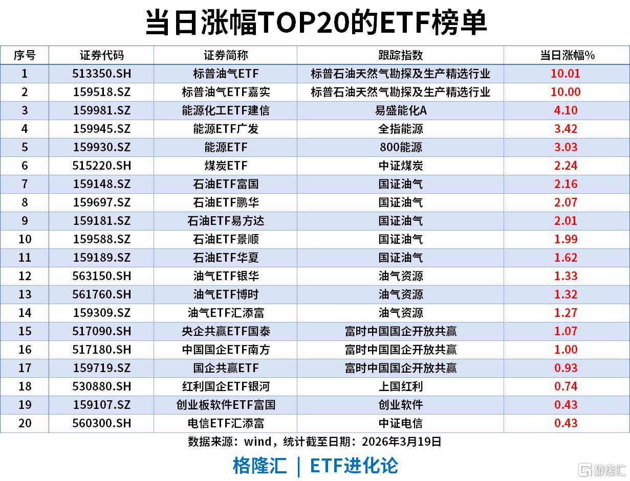 当日涨幅TOP20ETF(截至2026-03-19)