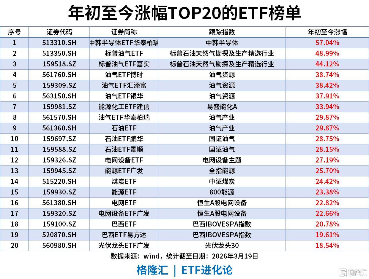 年初至今涨幅TOP20ETF(截至2026-03-19)