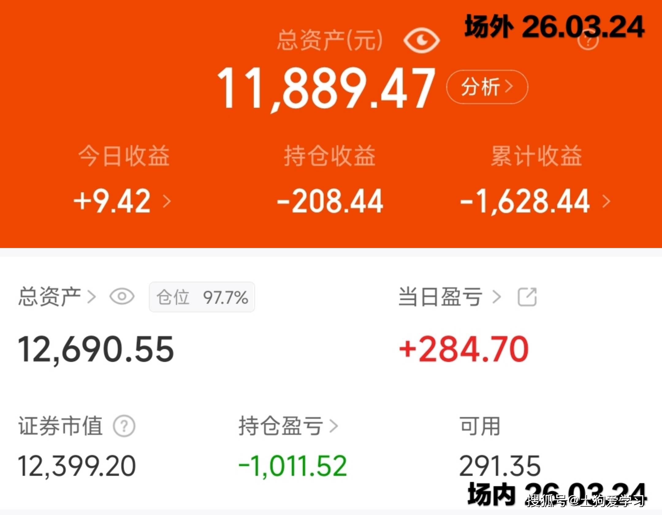 26.03.24 基金盈收294元~ 场内盈收285元;场外盈收9元。