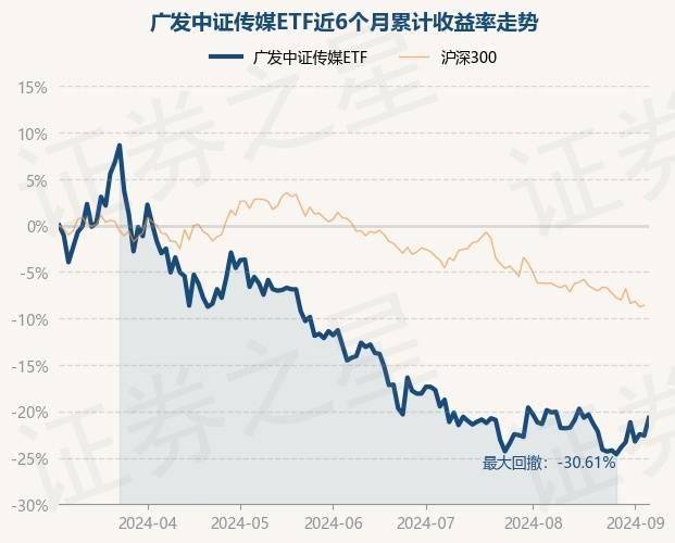 证券之星消息,9月5日,广发中证传媒ETF最新单位净值为0.591元,累计净值为0.591元,较前一交易日上涨2.44%。历史数据显示该基金近1个月上涨0.82%,近3个月下跌8.99%,近6个月下跌20.72%,近1年下跌26.77%。该基金近6个月的累计收益率走势如下图: