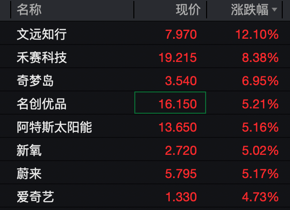 中概股集体爆发。截至发稿,文远知行涨超12%,名创优品、蔚来涨超5%。