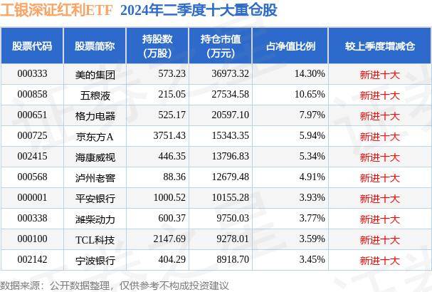 工银深证红利ETF为指数型-股票基金,根据最新一期基金季报显示,该基金资产配置:股票占净值比99.18%,无债券类资产,现金占净值比0.88%。基金十大重仓股如下: