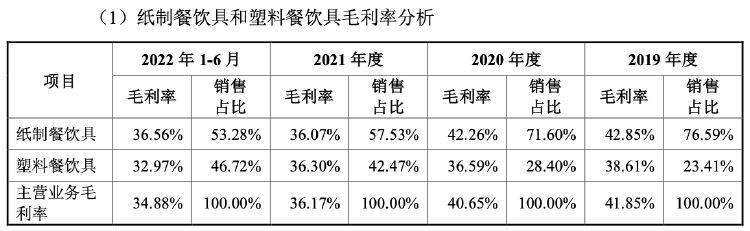 细看恒鑫生活主营业务毛利率中的两项业务,纸制餐饮具和塑料餐饮具也都下滑明显。