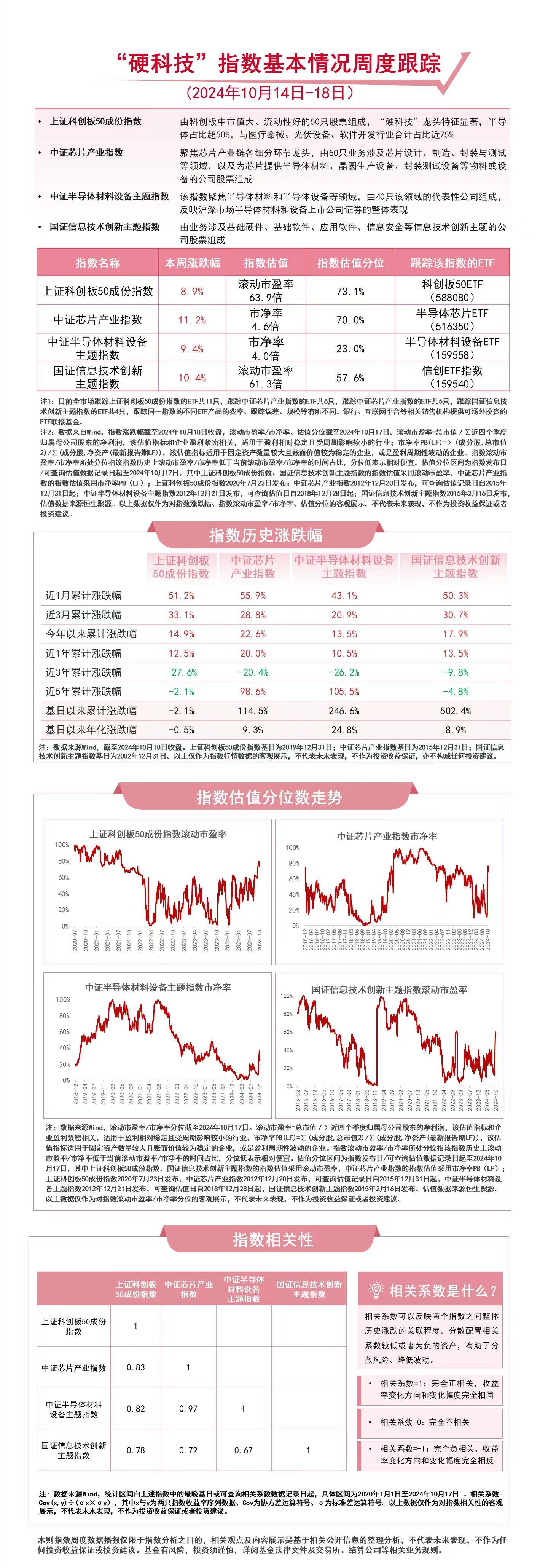 本周上证科创板50成份指数上涨8.9%,中证芯片产业指数上涨11.2%,中证半导体材料设备主题指数上涨9.4%,国证信息技术创新主题指数上涨10.4%。